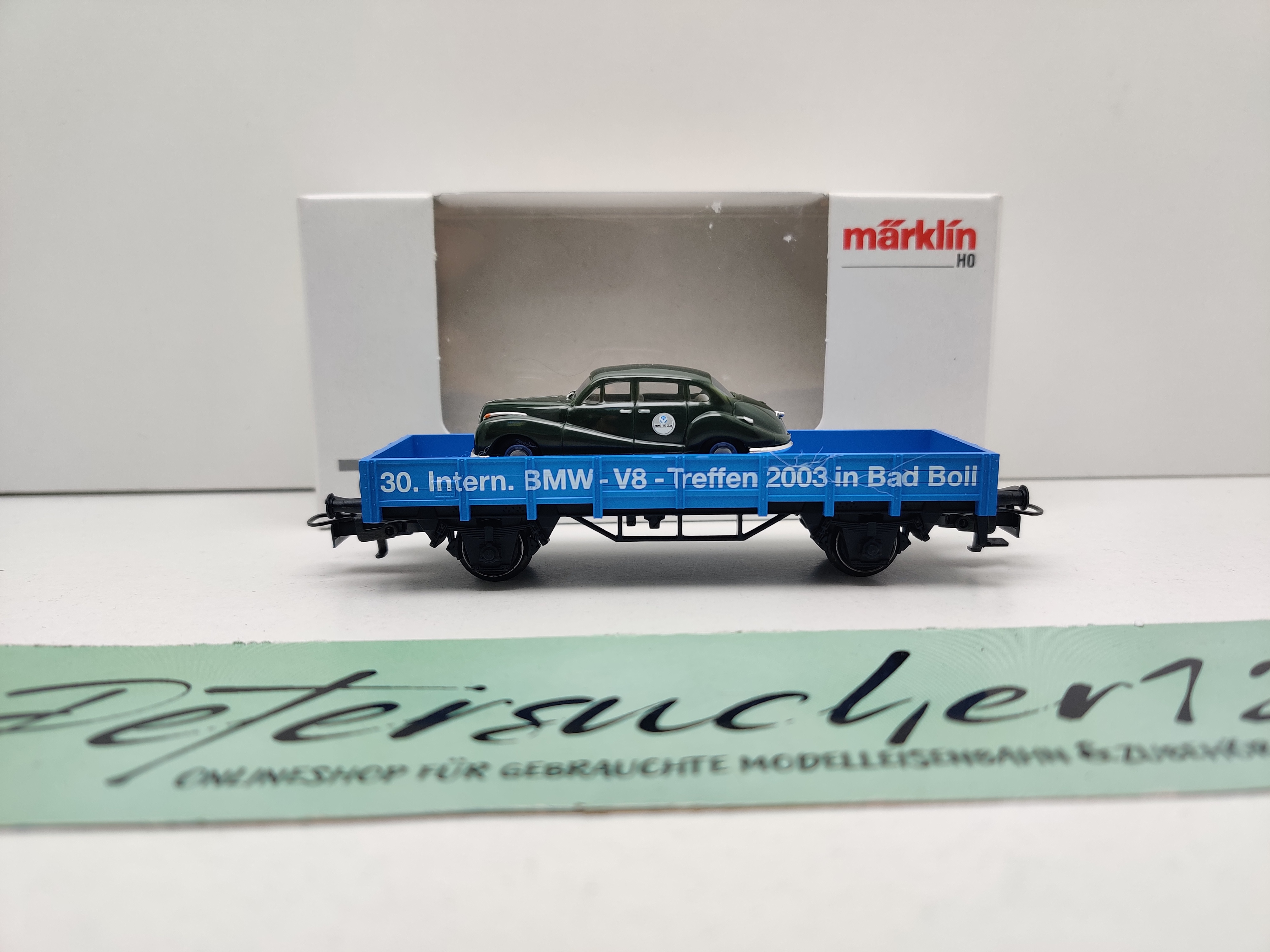Zustand 2- ohne abgebrochene Teile mit Gebrauchsspuren ohne Farb - und Klebereste Siehe Fotos Basiswagen: Niederbordwg Artikelnr. 4423 // Sondermodell zum 30. Intern. BMW-V8-Treffen 2003 in Bad Boll